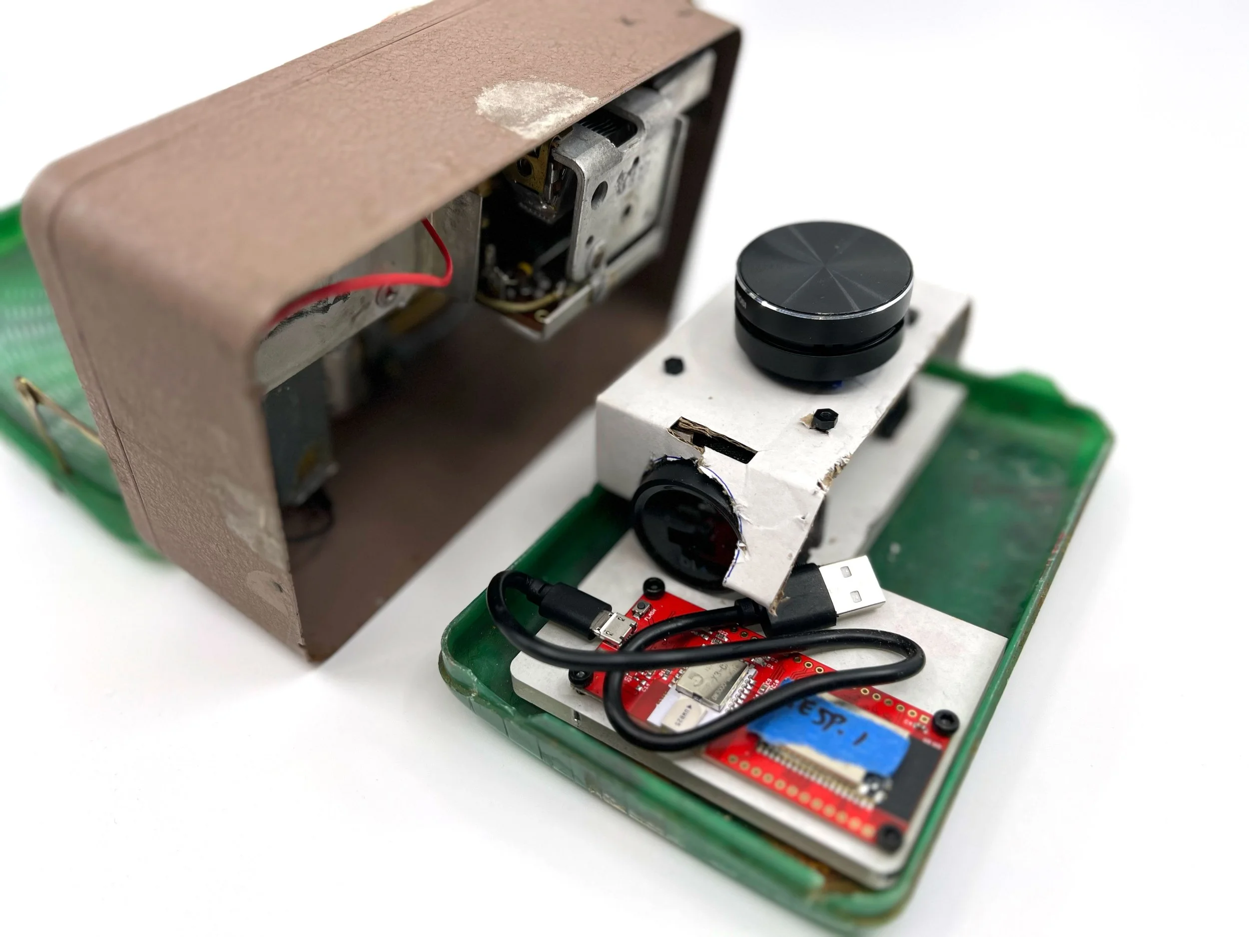 This is an early prototype of one of the eight transistor radios using custom internal electronics. This prototype uses an ESP32 DW3000 Ultra-wide Band (UWB) module for precise location-based sensing. It’s the same technology Apple uses in its AirPods, Watches, and Macs when you need to “Find my…”.